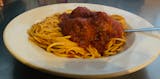 Spaghetti topped with our homemade meatballs.